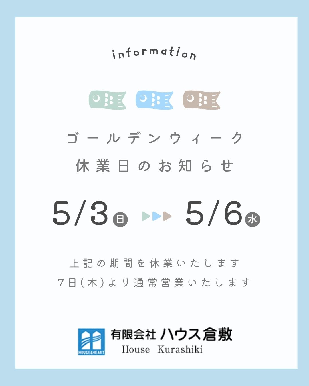 ゴールデンウィーク休業のお知らせ