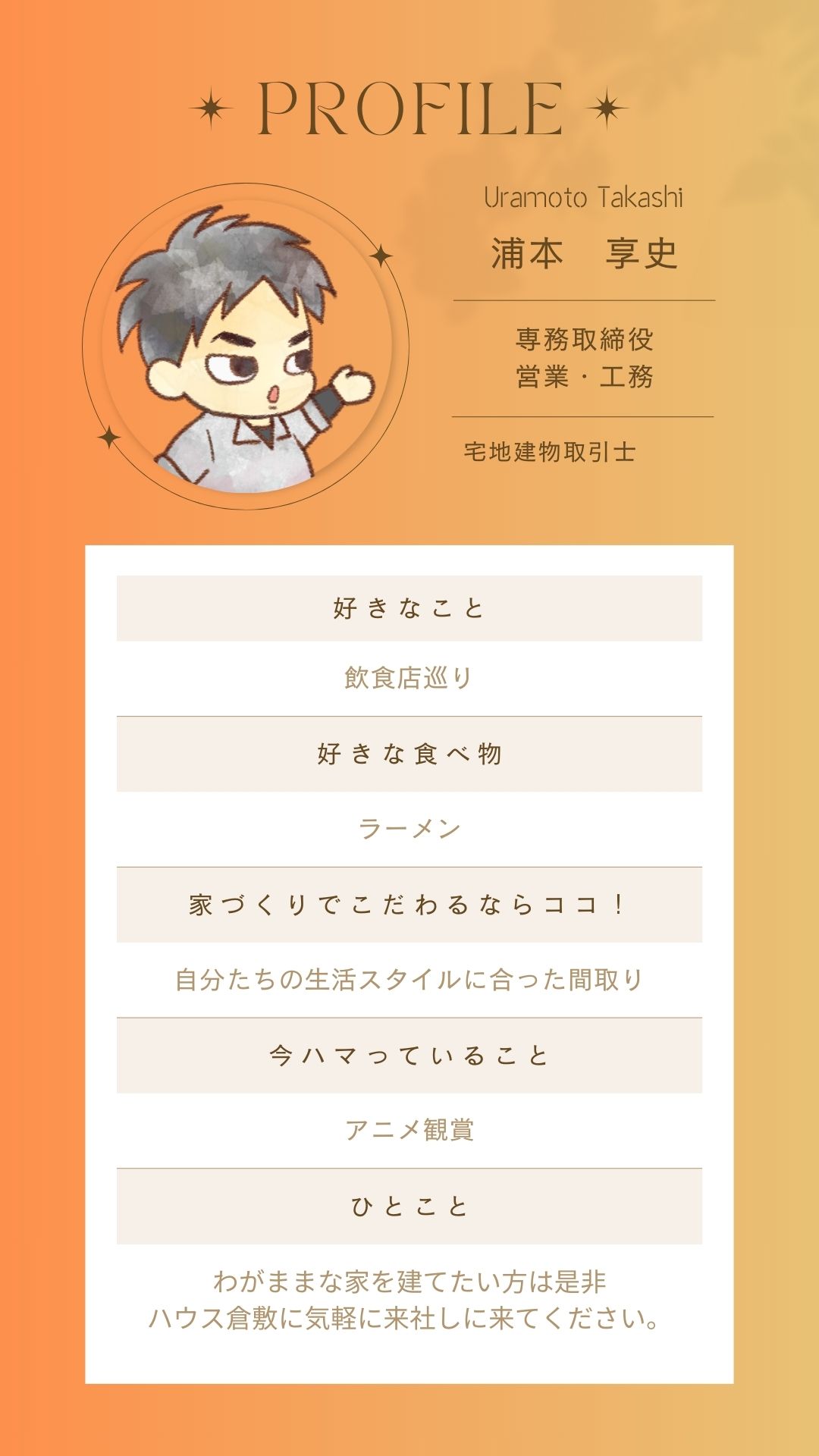 私たち有限会社ハウス倉敷は、「笑顔あふれる楽しい家づくり」をスローガンに、資格を持つスタッフと熟練の職人が一丸となり、住まいづくりに取り組んでいます。 お客様の雑誌の切り抜きや漠然としたイメージなど、どんなに小さな想いも丁寧にくみ取り、プロとしての視点を重ねながら、期待を超える住まいを一緒に形にしていきます。 私たちが大切にしているのは、「顔の見える」家づくりです。 一棟一棟を丁寧に、自社責任施工でつくり上げ、完成した住まいにお施主様はもちろん、関わったスタッフも共に感動できる、そんな家づくりを目指しています。 また、「信頼・安心・感動の家づくり」を実現するため、耐震保証付きの構造体や第三者機関による保険を採用し、迅速で確実なアフターサービスにも力を入れています。 欠陥住宅を絶対につくらないこと、そして住まいづくりが一生の想い出として心に残ること。その想いを胸に、これからも地域の皆様に寄り添い、末永くお付き合いいただける家づくりを続けてまいります。