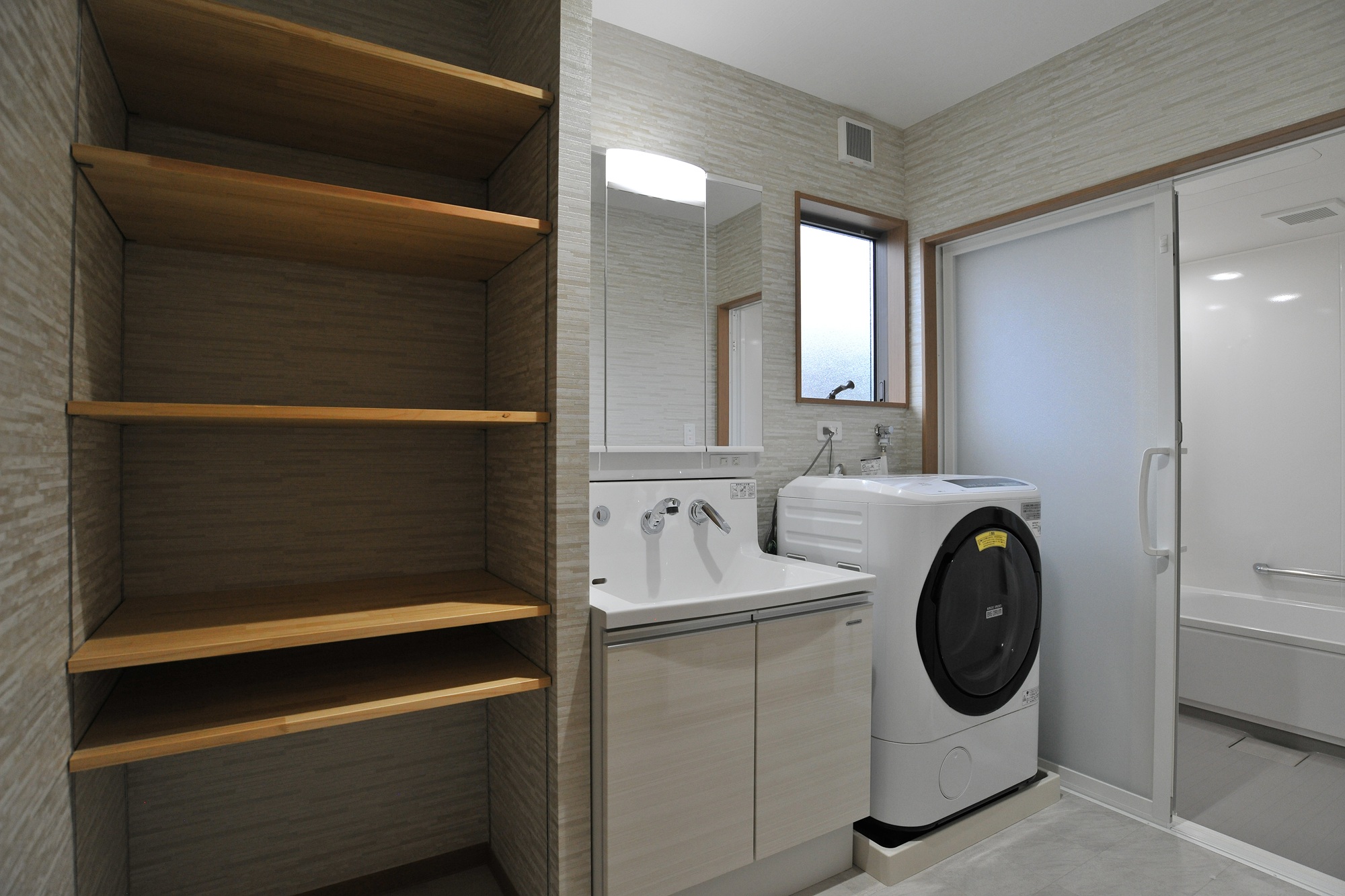 ご主人のイメージした便利な動線や機能性も実現。キッチンの背面側にトイレや洗面、浴室などの水回りを配し、使い勝手も抜群。